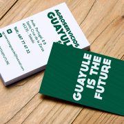 Diseñamos unas tarjetas de visita en las que en la cara frontal de estas aparece el slogan de la compañía “Guayule is the future” con un fondo verde representando su color corporativo. Por otro lado, la cara trasera cuenta con la información de contacto del cliente.
